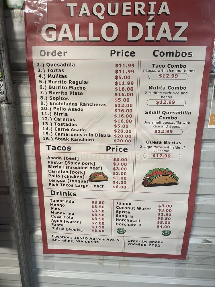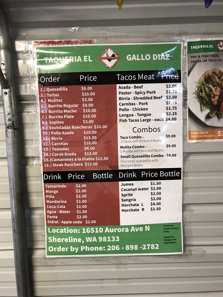 Welcome to Taqueria El Gallo Diaz, a vibrant food truck nestled in Shoreline, WA. Specializing in authentic Mexican fare, this spot transforms classic street food into a culinary delight.
